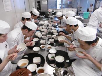 初めての揚げ物実習で、「油の温度の見極めが難しかった~」と学生。