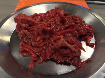 今日のメニューは「牛もも肉の辛味炒め」になっております。
