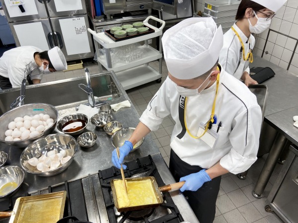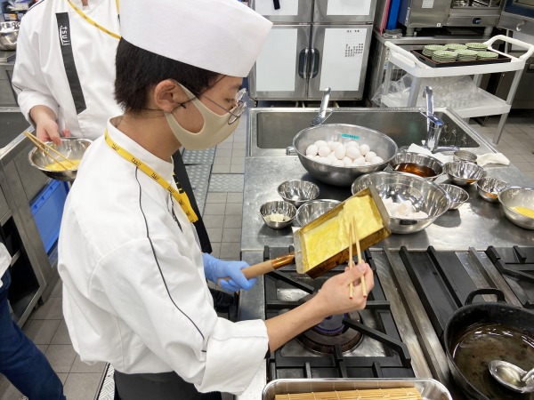だし巻き玉子はこれまで個人実習という授業で5回(1回180分授業×5回)練習を積み重ねてきました。