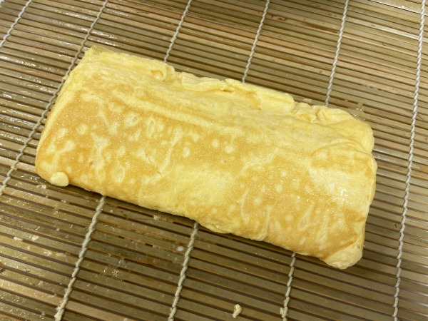 こちら焼き色はあまり付いていないが形が崩れています。原因は箸だけで巻こうとしていますね。