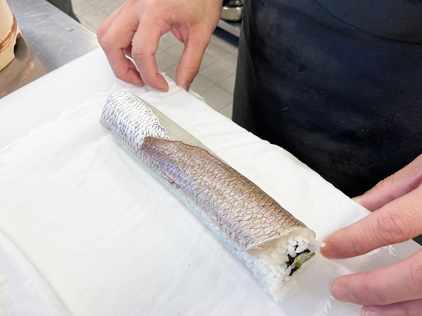 そして下準備した鯛の身で巻けば完成!
