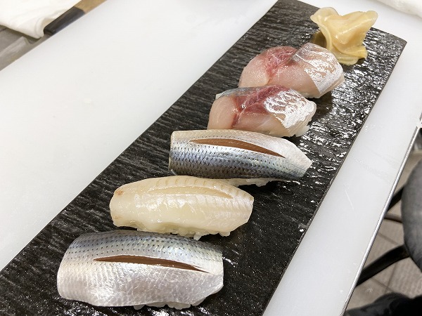 後半は握りずしです!すしネタは「すべて酢でしめたアジ、キス、コハダ」です。
