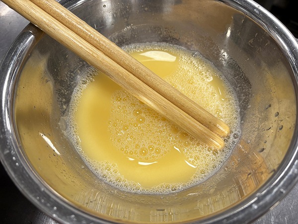 계란 노른자와 물을 섞습니다. 이것을 '달걀물(卵水, 난스이)'라고 합니다.