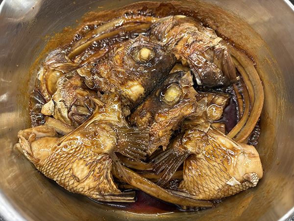 できたての鯛のあら煮です!甘辛~い煮汁が鯛に絡まり美味しそうではありませんか