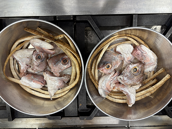 本日の個人実習は全員が鯛のあらを使って「鯛のあら煮」を作りますが、この料理には大切な煮物の基礎がたくさん含まれているのです!では紹介していきますよ。