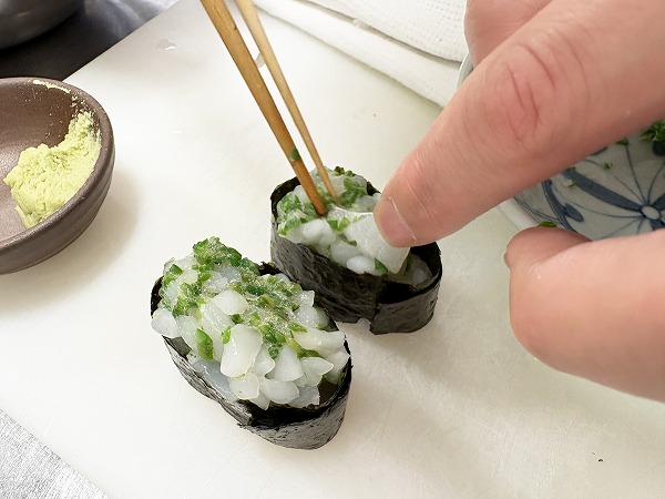 混ぜ合わせ「イカオクラ」軍艦巻きのネタとなります!