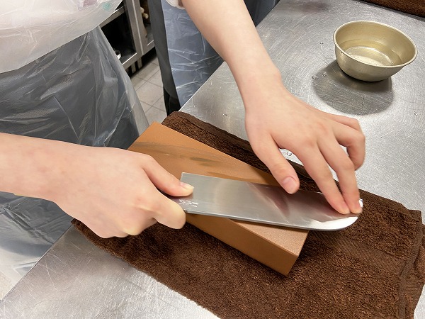 授業後半、包丁研ぎはスムーズにできるようになりました