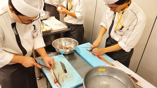 泳いでいる穴子を開くのですが、学生は個人実習でも行っているためかなり上手になりました。
