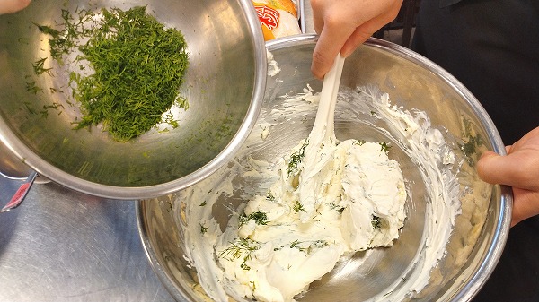 こちらではクリームチーズに香草のディルを混ぜています。