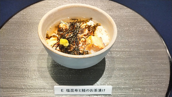 料理はシンプルな「塩昆布と鮭のお茶漬け」です。
