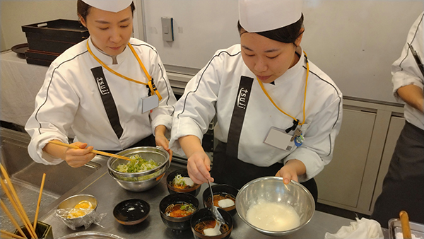 日本料理クリエイティブ経営学科で頑張っている学生さんの授業風景を