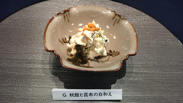 豆腐の白色で北海道の雪景色をイメージした「秋鮭と昆布の白和え」です。