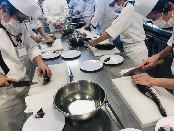 この授業は河豚の取り扱いの知識とさばく技能の獲得を目指します。