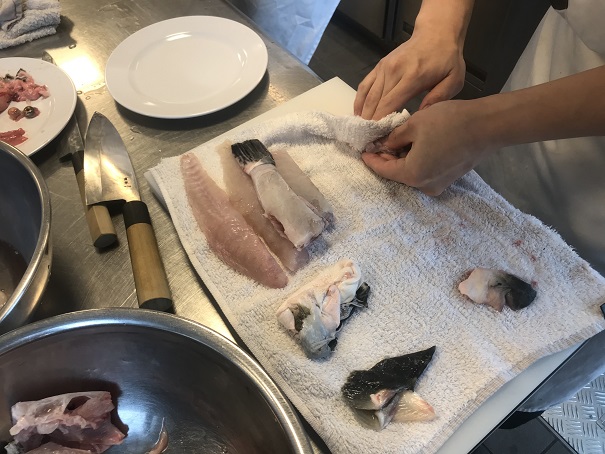 講師が見事な手捌きで河豚をさばき終えられました!