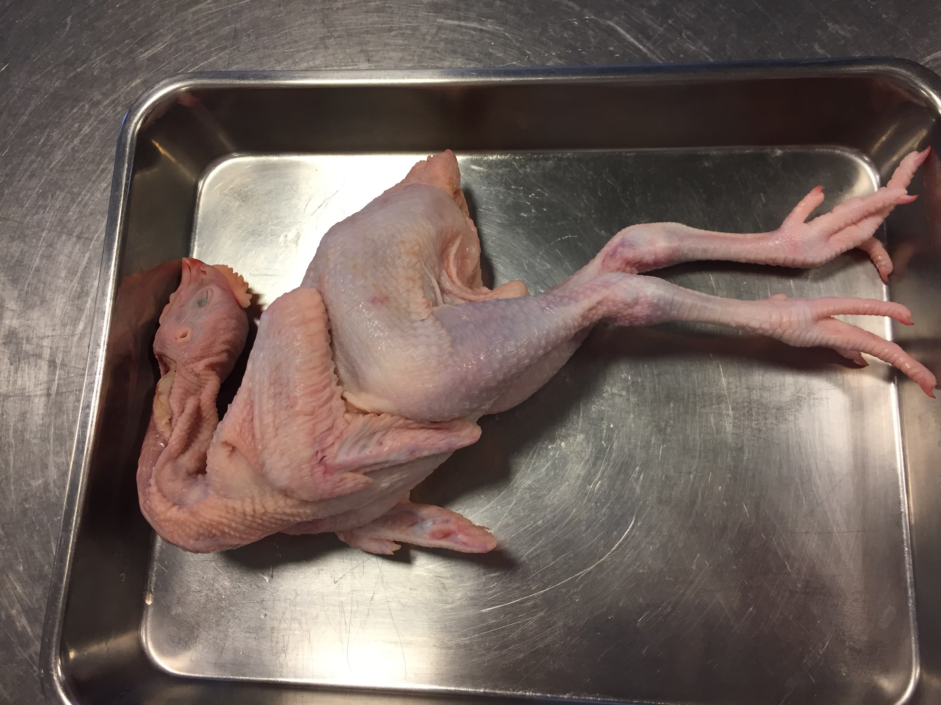 若鳥は頭や足など要らない部分を切り落としてボイルし、あく抜きをします。