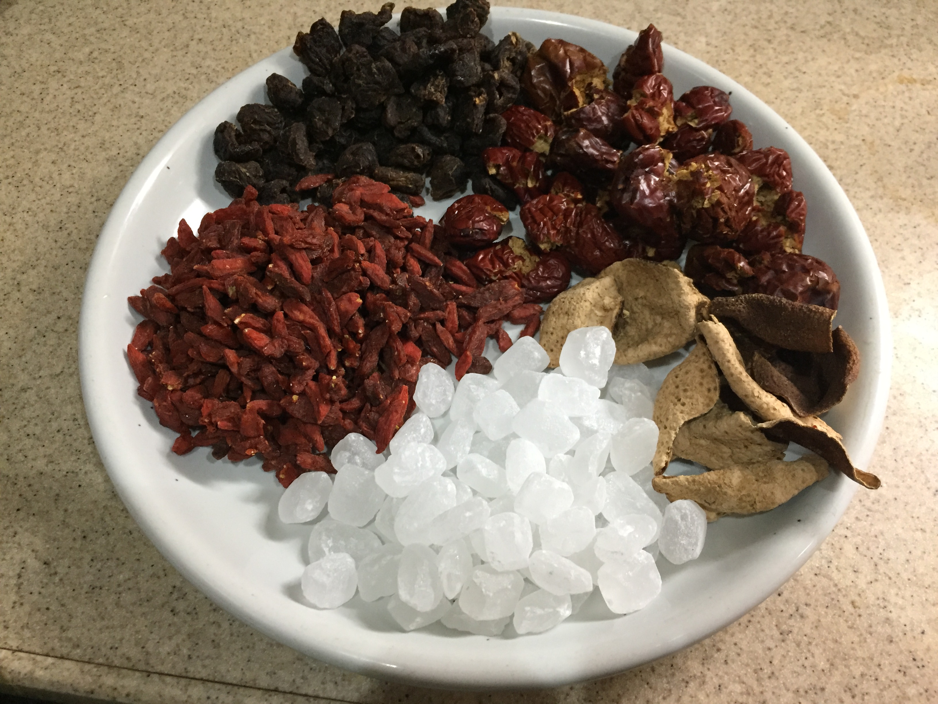 龍眼、ナツメ、クコの実、陳皮、氷砂糖です!
