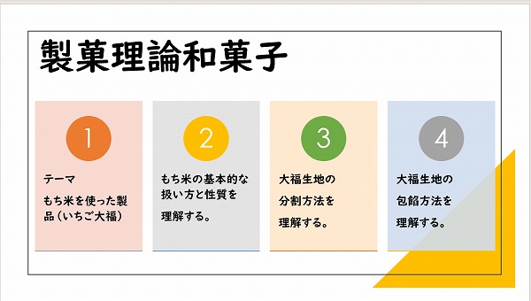 今回は「製菓理論・和菓子」にスポットを当ててご紹介します。