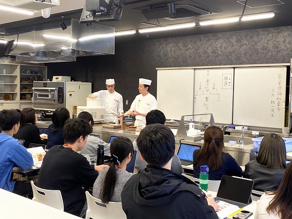 辻調理師専門学校の製菓理論は、お菓子の「なぜ?」を目の前で先生が実際にお菓子を作っていく工程を見る事で、まさにライブ感覚で体感することができます。