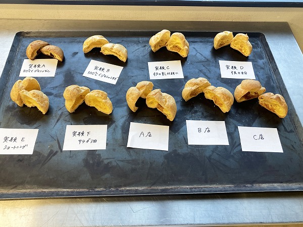 1年次に理論や実習などで学んだ基本生地の粉類を変えてみたらどうなるか、