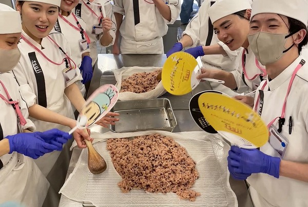 みんなで お赤飯づくりに挑戦した様子が映っています。