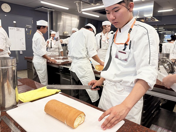 長い夏休みが終わり、「ロールケーキ」の実習からスタートしました!