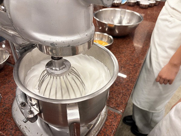 先生から、メレンゲ作りのポイントを教えてもらいます。