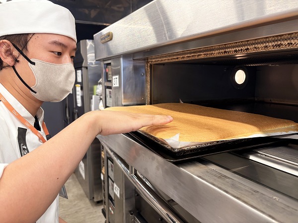 生地が焼きあがってきました。実際に触ってみて焼き上がりを確認します。