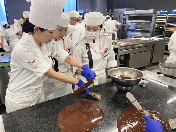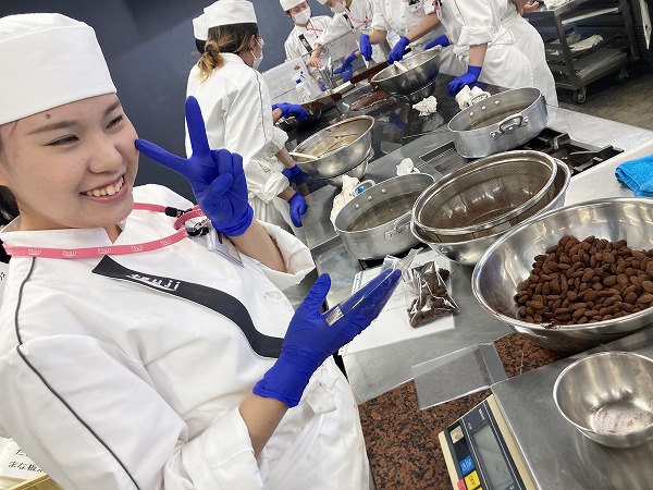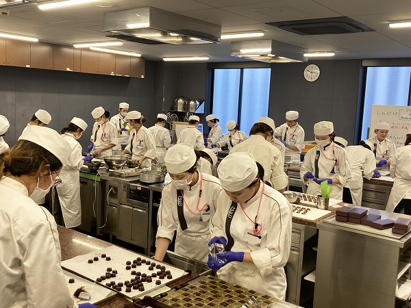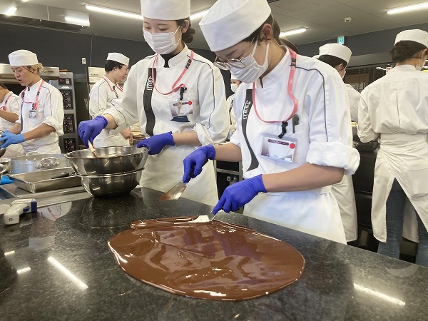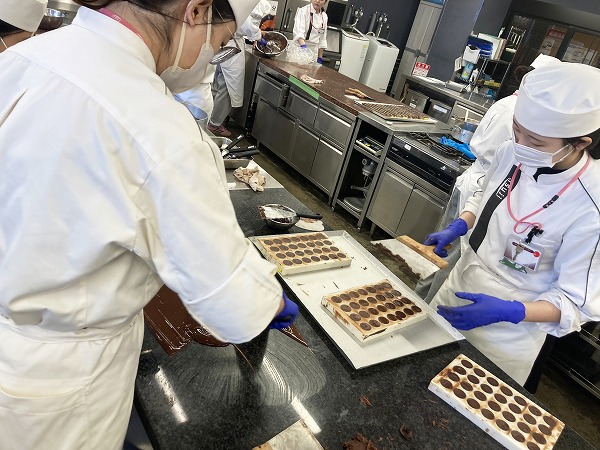 製菓総合クラスでは数回連続でチョコレートの実習を行います。