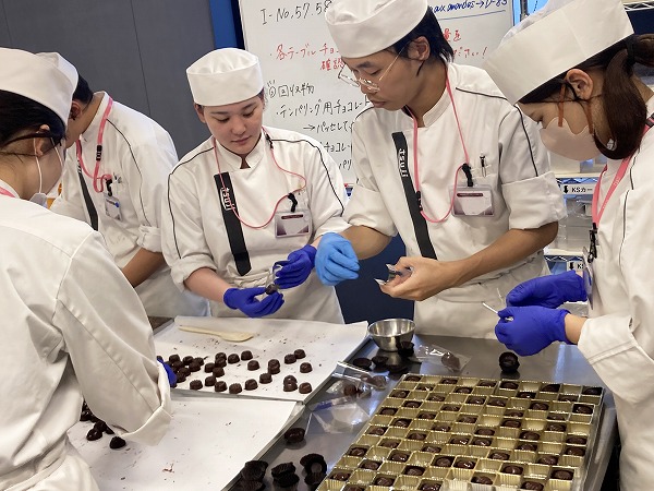 1年生でも習ったトランペ(チョコレートに潜らせコーティングする作業)をはじめ、