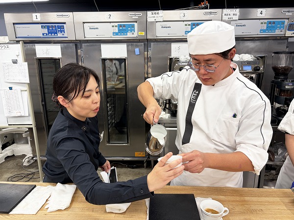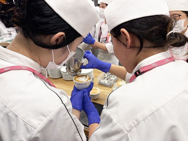 バリスタの資格を持っている先生(本校の先生です!)から直々に指導を受け、ラテアートも習得できるのです!