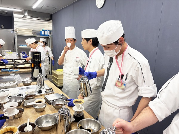 製菓学科で唯一、業務用のエスプレッソマシーンを使用して、