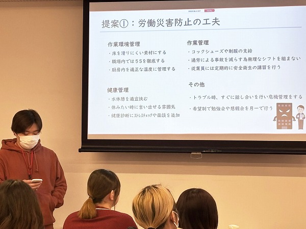 学生たちの発表からは、「働く人を大切にするお店をつくりたい」という前向きな姿勢が強く感じられました。