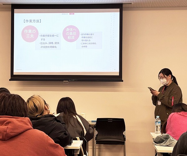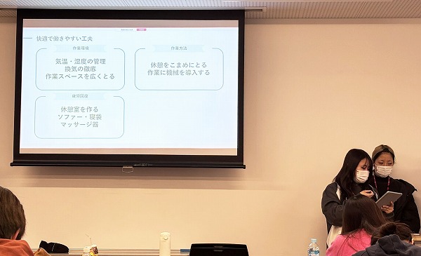 学生たちは、安全だけでなく、心身ともに無理なく働き続けられる快適職場づくりにも目を向けていました。