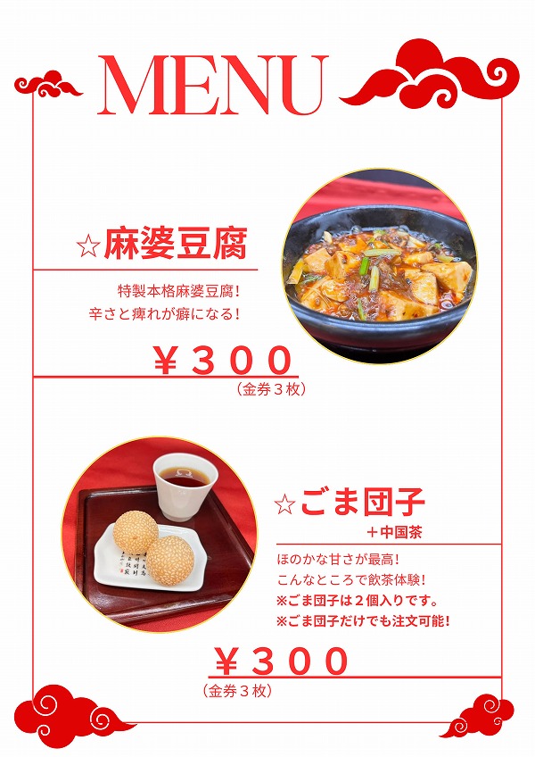 麻婆丼400食 胡麻団子・中国茶セット300食は見事完売。
