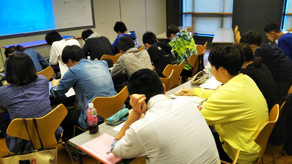 マネジメントの2年生は実習の前に、座学教室で授業を聞き