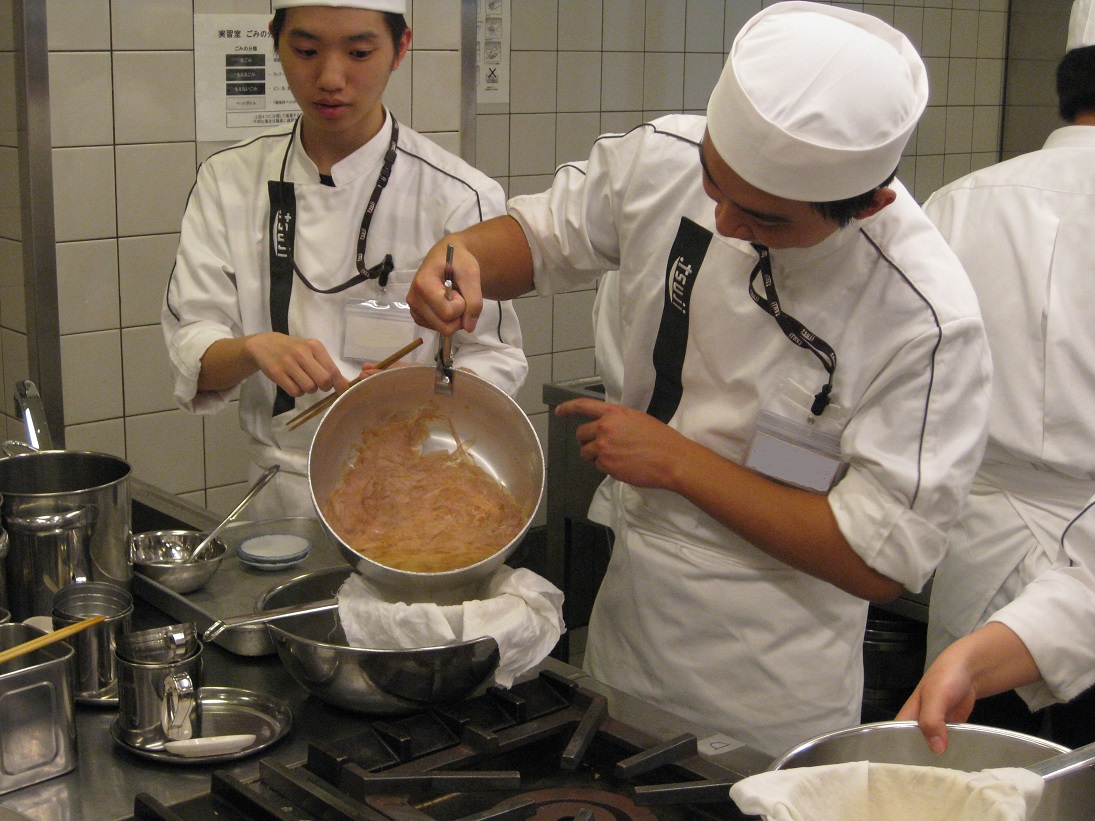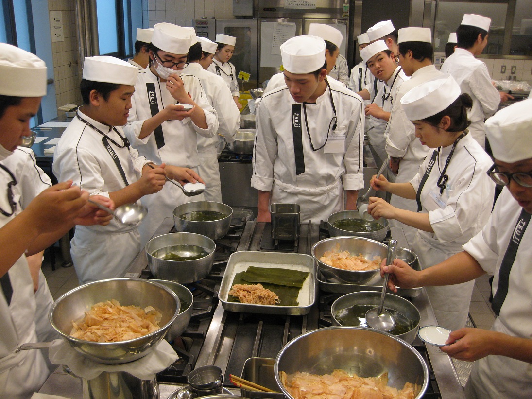 こうやってひとつずつ授業で経験を積み重ねていくことで一年間の終わりには色々な日本料理を作ることができるようになっています。