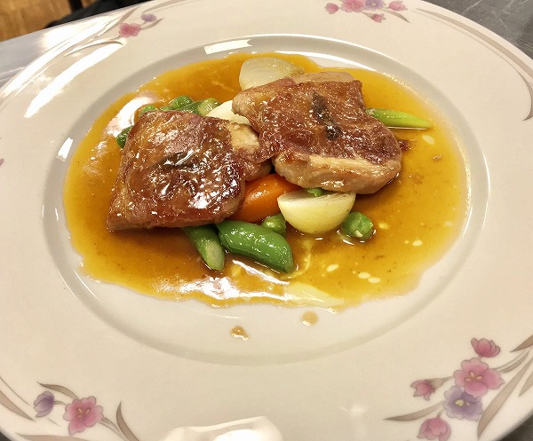 子牛のだし汁とバターで作ったソースの中で仕上げて提供します。
