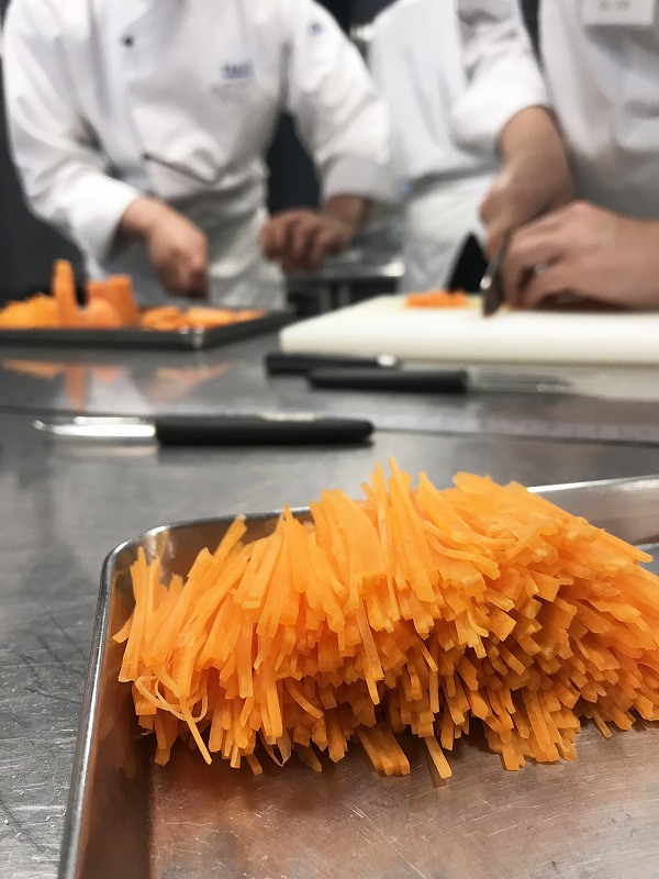 就職してからは野菜などの下処理や包丁を扱った作業を手早くたくさん行わなければなりません。