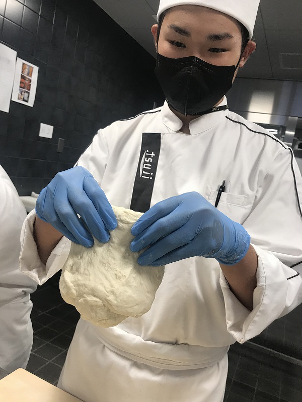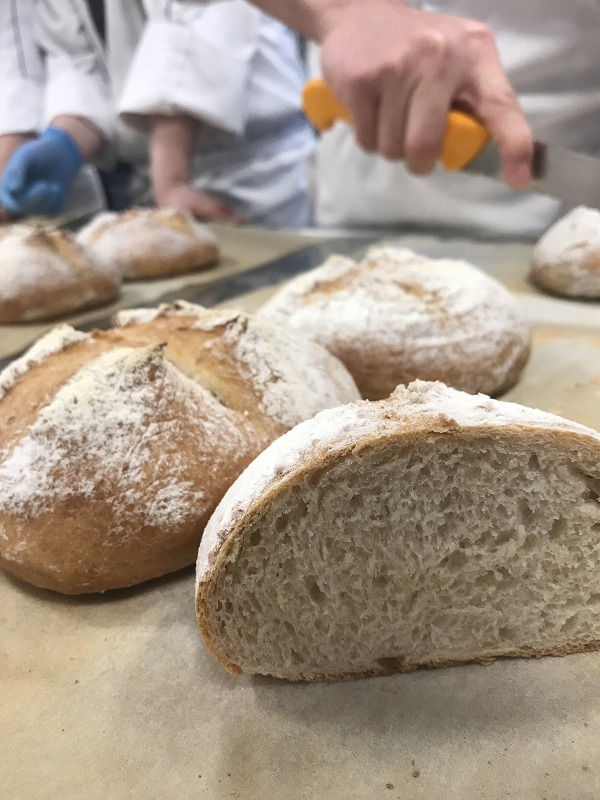 シミュレーション実習でフランス料理やイタリア料理に合うパンをそれぞれ作り、お客様に提供します。