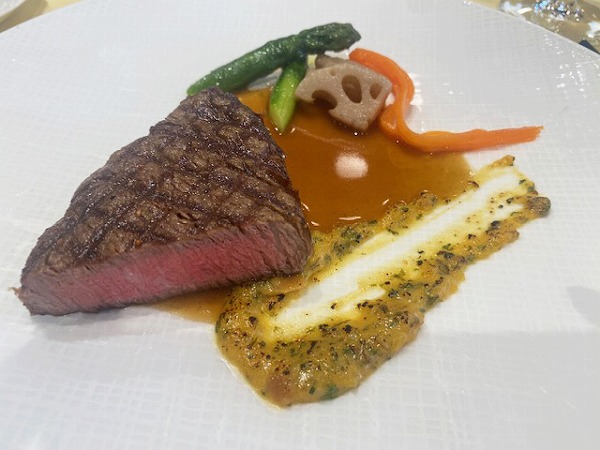 「牛フィレ肉のグリエ、金山寺みそ風味のベアルネーズソース」