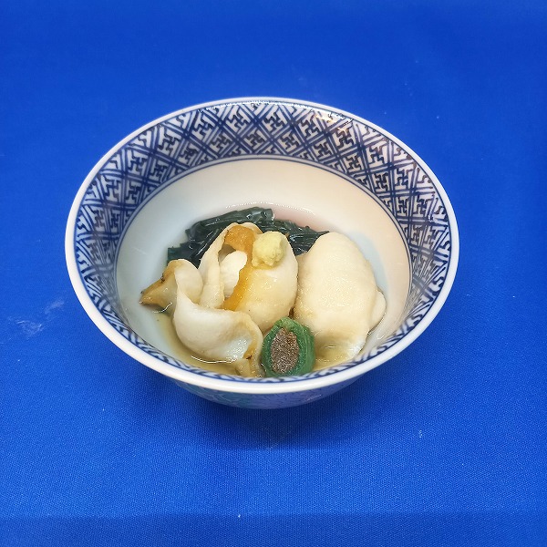 吉野煮は薄く切った鮑に葛粉をつけてさっと煮汁で煮ると歯切れのよい柔らかな食感に。