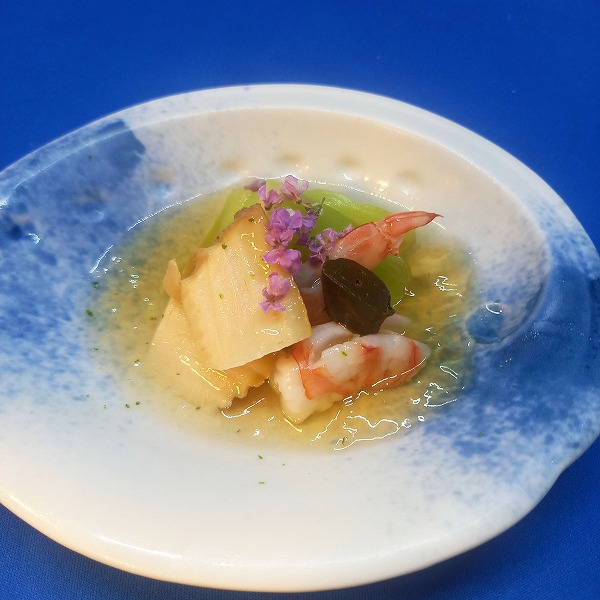 今回はクロアワビを塩釜焼きに、メガイアワビを吉野煮、蒸し鮑のゼリー掛けに調理しました。