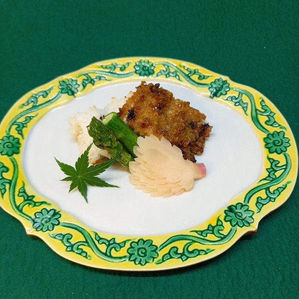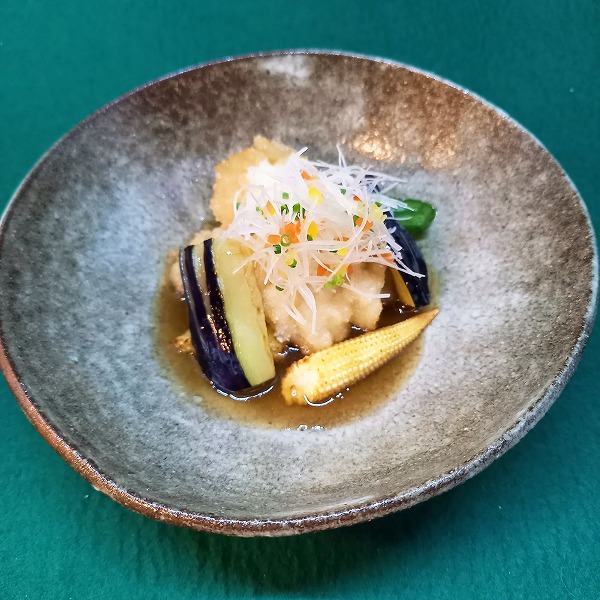 そして揚げ物は、もち米を加工して乾燥させた道明寺粉を使った餅粉揚げです。