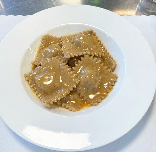 パスタも詰め物もしっかりしてるので、子牛の茶色い出し汁を使ったとのこと。