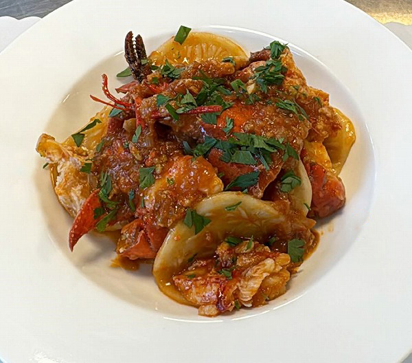 ロング、またはショートパスタを1種類(オマール海老のソースと和える)を作成。