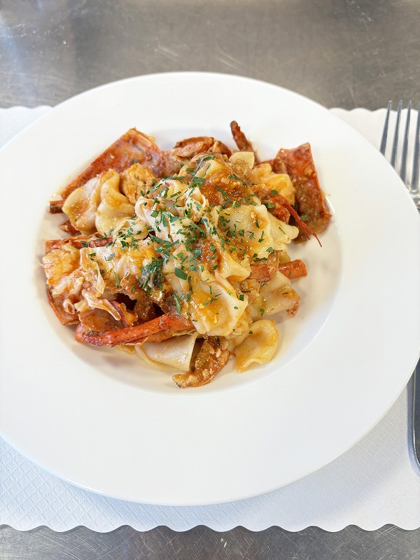 そして、3皿目のオマール海老のソースに合わせるパスタですが、どんな感じに仕上がったかなー?