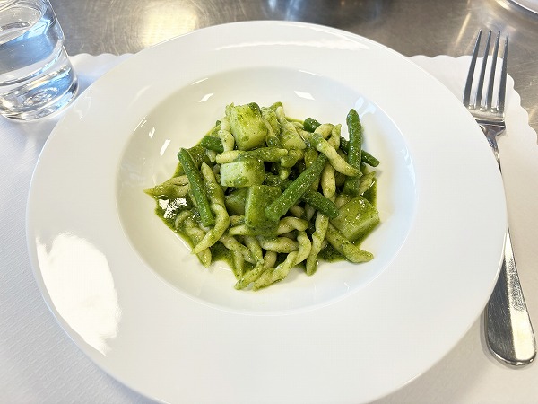 トロフィエには定番のペスト・ジェノヴェーゼを和えました。
