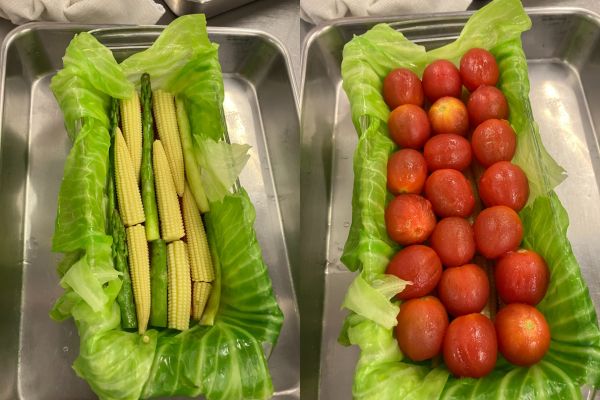 キャベツにアスパラ、ヤングコーン。プティ・トマト。