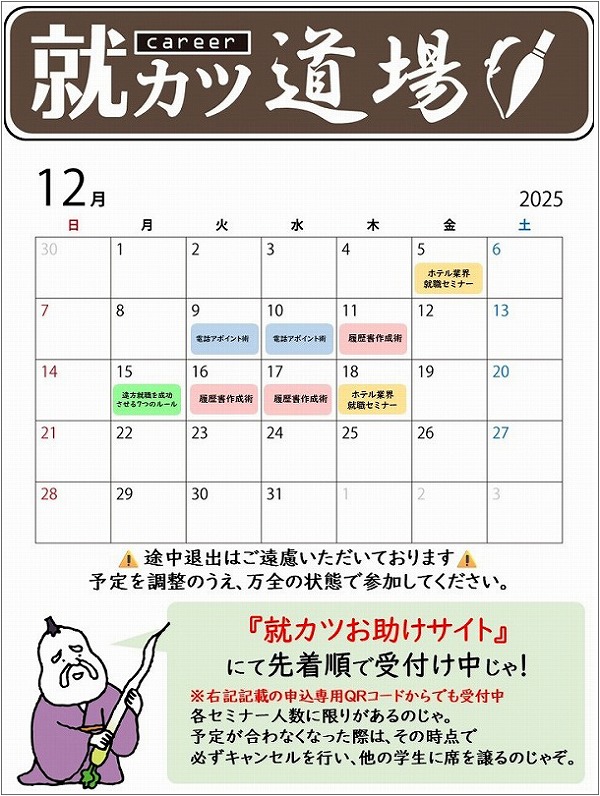 この12月を『来年度の就職活動に向けた本格的な準備期間』として位置づけて