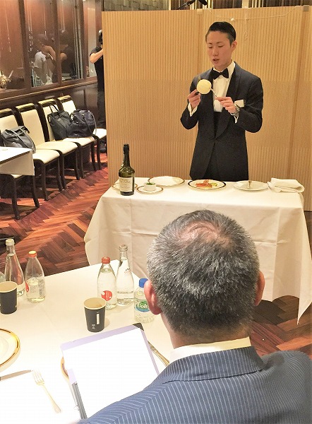 私たちの審査をして下さったのがメートル・ド・セルヴィスの会(URL:http://maitreservice.com/index.html)というサービスの協会の方々で、日本を代表するレストランやホテルの一流サービスマンの方々が審査をしてくださいました。審査員を前にして、みんな、練習通りにカットできなかったり、当日の状況をあまり覚えていないくらい、とっても緊張しました。